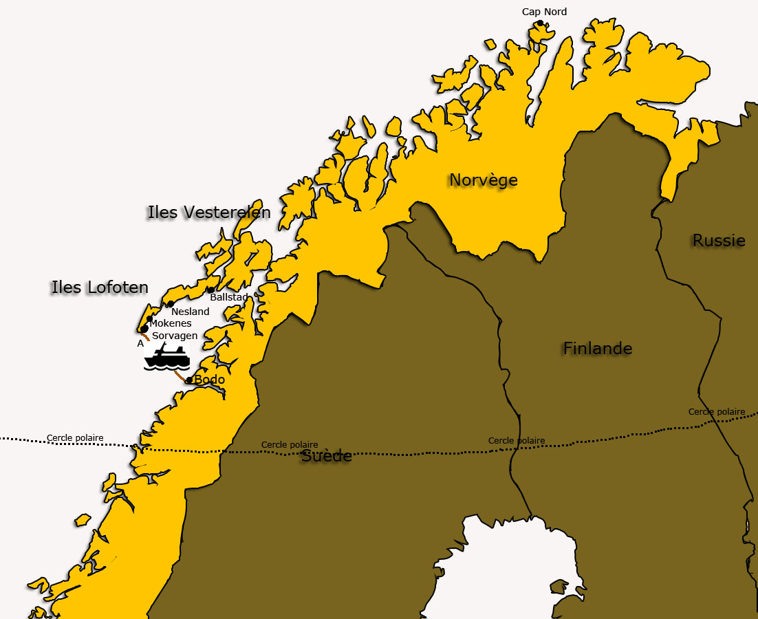 Nous arrivons en milieu d’après-midi à Bodø, nous déposons les bagages à l’hôtel et nous décidons d’aller du côté du port. Nous nous dirigeons vers la jetée et les embarcadères du port. Nous admirons les superbes et vieux bateaux de pêche en bois. Nous arrivons au bout de la jetée et nous apercevons, nageant au bord une belle loutre. Ce petit animal plonge pour rechercher certainement du poisson, nous la suivons un moment et nous admirons sa façon de nager. Nous retournons vers l’hôtel afin d’aller tous ensemble dîner dans un restaurant au milieu de la ville, nous retournons en fin de compte au restaurant Orion, la première fois que nous sommes venus. Après le dîner, en retournant vers l’hôtel, nous nous arrêtons au plus haut bâtiment de la ville, afin d’admirer une dernière fois le soleil de minuit. Nous repartons vers minuit à notre hôtel pour passer la dernière nuit en Norvège. Le lendemain nous reprenons l’avion à dix heures pour repartir vers Oslo, afin de reprendre le deuxième avion pour Paris. Nous aurons une escale de 5 heures à Oslo.