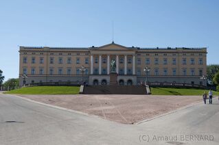 Samedi 4 juin 2011 : J’avais rendez-vous à 8h30 à l’aéroport d’Orly au comptoir de réservation de Terres d’Aventure, après avoir pris les billets, enregistré les bagages et surtout j’ai fait connaissance avec le reste du groupe, nous décollons vers 10h00 pour atterrir deux heures plus tard à Oslo. Nous rejoignons par le bus l’hôtel à côté de l’aéroport pour y déposer nos bagages. Comme l’autre avion vers Bødo était le lendemain, nous décidons d’aller visiter la ville d’Oslo situé à 40 kms de l’aéroport. Nous reprenons le bus pour rejoindre l’aéroport et nous prenons le train (c’est comme à Paris avec le RER). Nous décidons donc à l’aller de prendre le train normal pour rejoindre la capitale. Après une bonne demi-heure de trajet nous arrivons à Oslo. Nous sortons de la gare et nous nous dirigeons vers la cathédrale d’Oslo : Domkirken Sokn. Malheureusement nous ne pouvons pas entrer à l’intérieur, comme c’est samedi nous arrivons trop tard, cette belle cathédrale ferme vers 16h00. Nous faisons donc le tour pour admirer le clocher et le beau jardin qui se trouve derrière. Après la cathédrale nous remontons une grande avenue piétonnière qui est très animée ce jour, nous remarquons plusieurs groupes de musiques se donnant en spectacle. Cette fête ressemble à celle de la musique, mais façon norvégienne. Nous remontons la grande avenue Karl Johans gate vers le palais, en haut de l’avenue nous avons une belle perspective. Nous longeons plusieurs squares et de beaux immeubles du XIXème siècle. Nous passons aussi à côté du théâtre National et de l’Assemblée Nationale norvégienne : Stortinget.