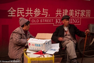 DSC_8187.jpgAprès 2h30 de vol entre Honk Kong et Kumming nous arrivons en milieu d’après-midi à Kumming. Nous sommes accueillis par le guide qui passera seulement cette fin de journée avec nous. Le vrai guide que nous allons avoir pendant le séjour sera là que le lendemain. Après avoir déposé les bagages à l’hôtel, le guide nous emmène visiter un peu les rues de Kumming. Nous parcourons au début la ville moderne de Kumming et ses grands buildings construits le long des rues. Nous sommes surpris par le peu de bruit du traffic. Les véhicules dans cette ville sont peu bruyants, nous nous sommes aperçus que la plupart des véhicules fonctionnent à l’électrécité. Cette ville fait un grand pas en avant vers l’environnement et nous pensons qu’à Paris il devrait y avoir la même chose. Ensuite au bout d’une heure de marche nous arrivons vers une grande place pietonnière et nous nous dirigeons vers la vielle ville de Kumming. Ici nous parcourons les vielles ruelles où nous voyons la vie dans la rue. Nous parcourons le petit marché aux fleurs, où nous admirrons une multitude de plantes et d’animaux, il y a aussi de grands aquariums où vivent de nombreux poissons différents. En début de soirée, nous allons dîner dans un vieux restaurant où nous pourvons admirrer la belle architecture typique chinoise. Après le dîner nous retournons à l’hôtel en parcourant les rues illuminées par ces grands buildings.