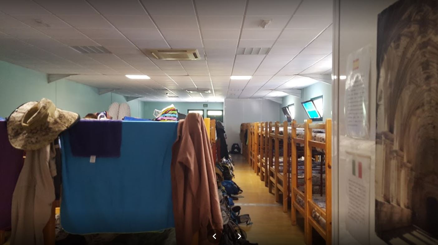 Et à notre surprise, c'est un petit bâtiment préfabriqué de 90 lits où déjà une file d'une vingtaine de personnes patientent pour réserver. Nous attendrons près d'une heure avant de prendre les dernières places. A l'intérieur c'est la fournaise et il y a vraiment peu de place, c'est un immense poulailler. Après avoir attendu notre tour dans les trois douches disponibles, nous sortons prendre une bière bien méritée. Nous faisons un petit tour rapide de la ville, car il n'y a pas grand chose à voir et nous retournons au gîte. Puis nous sortons une nouvelle fois pour aller dîner dans un petit restaurant juste à côté où nous aurons un menu pèlerin. Puis nous rentrons pour essayer d'aller dormir. C'était très difficile avec la chaleur et le bruit, c'est infernal.